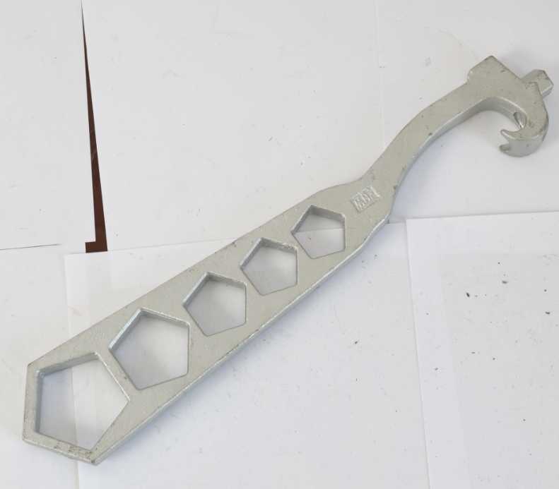 Pesado Serviço Adj. Chave de hidrante: Cabeça de ferro fundido, cabo de aço. Para porcas pentágono com chave de 1 3/4". Para pinos e terminais de balancim de 1 1/2" ~6".